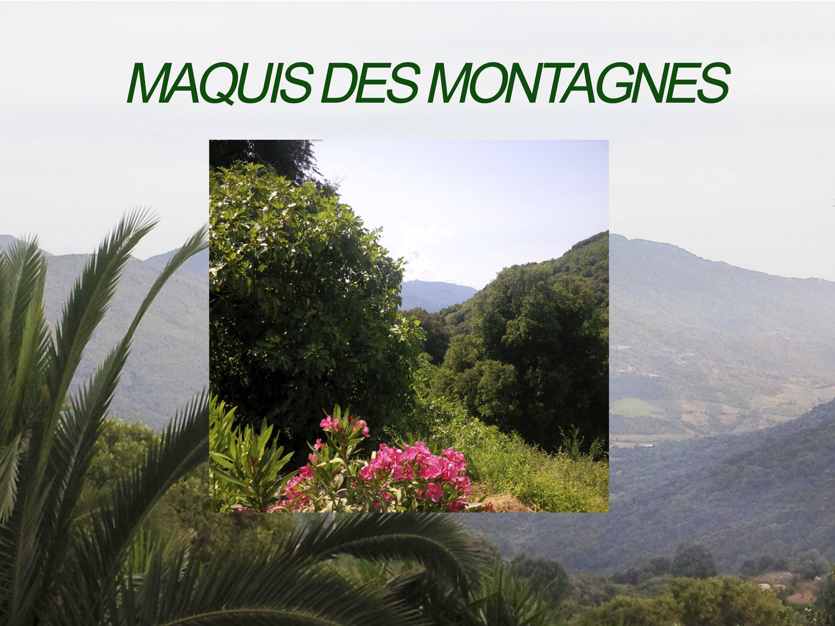 Le Parfum d'ambiance MAQUIS DES MONTAGNES (collection CREA CORSA).crée par TAKAYAKA évoque le puissant Souvenir olfactif des montagnes Corses .